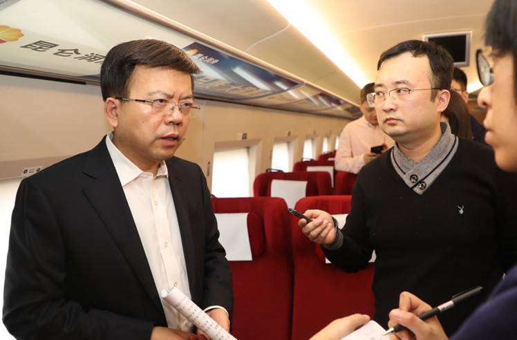 住陜全國政協委員張義光在赴京的列車上接受記者采訪。