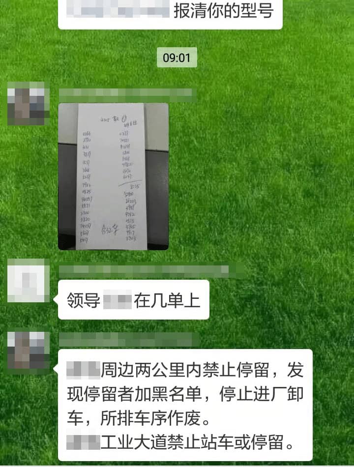 據了解,雖區域內供應略顯緊張,但是大多數企業門前并未見排長隊現象。企業利用新媒體平臺微信群通知的方式通知提貨車排隊編號和裝車時間。要求提貨車在距離工廠約兩公里外等候。收到微信通知再出發到工廠,避免工廠周邊道路擁堵。在工廠周圍停留者將被企業列入黑名單,停止進廠卸車裝貨,所排車序同時作廢。