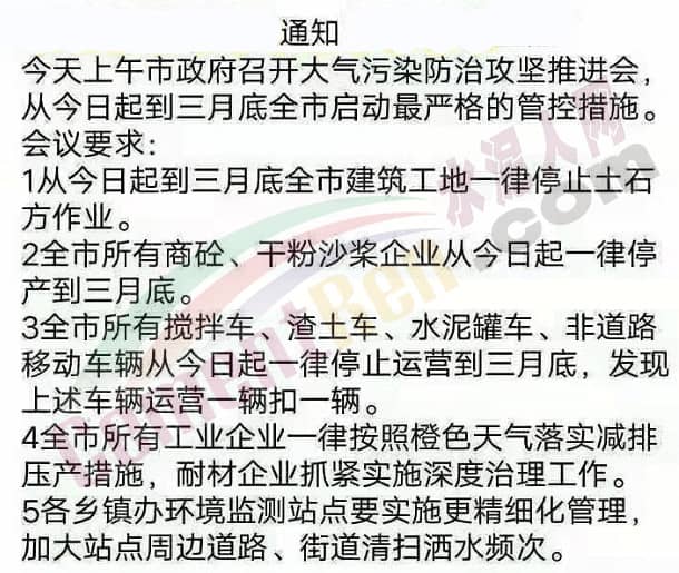 2 全市所有商砼、干粉沙漿企業一律停產到三月底。