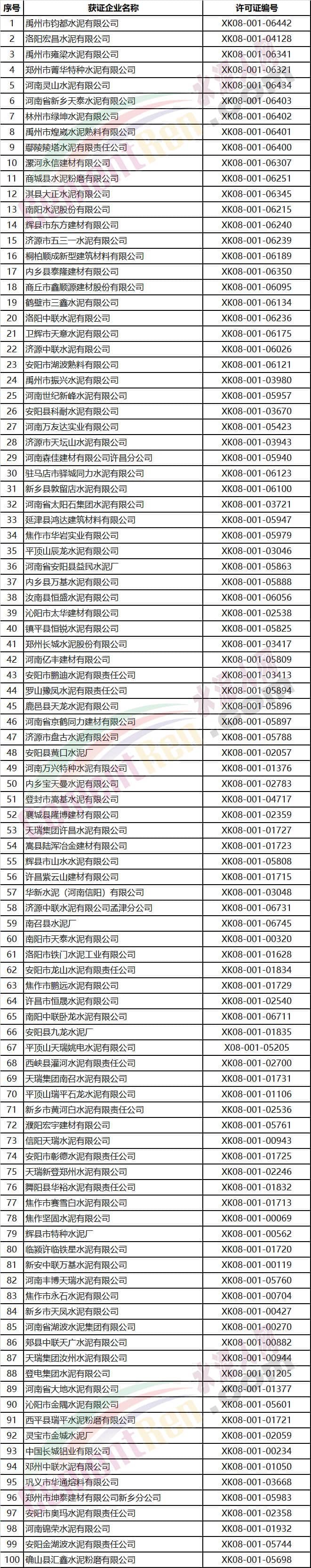 河南省部分水泥企業名單