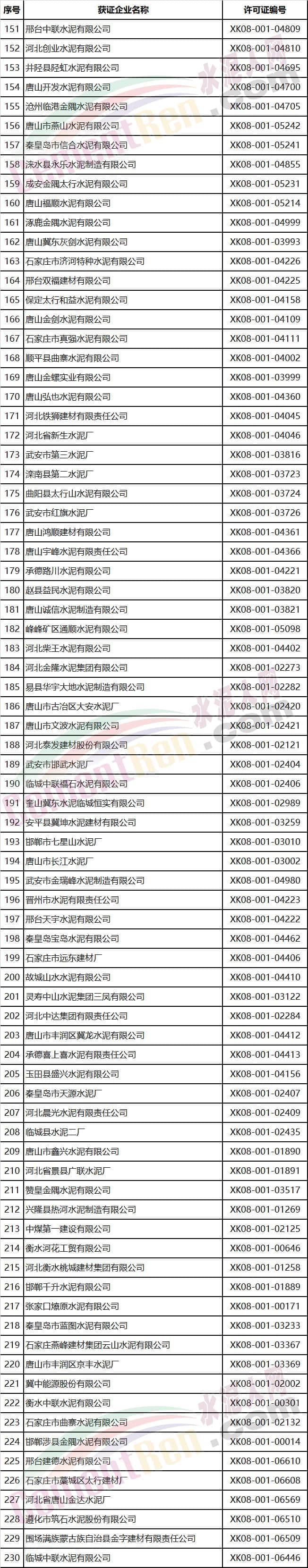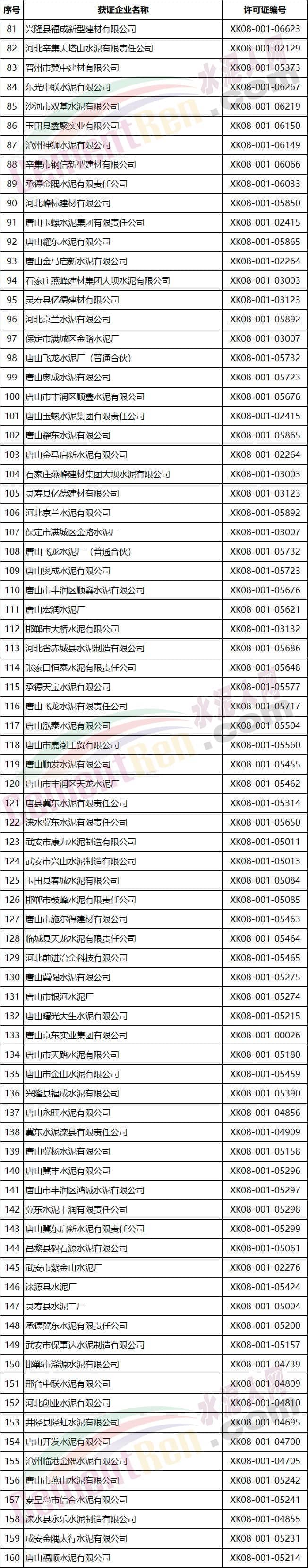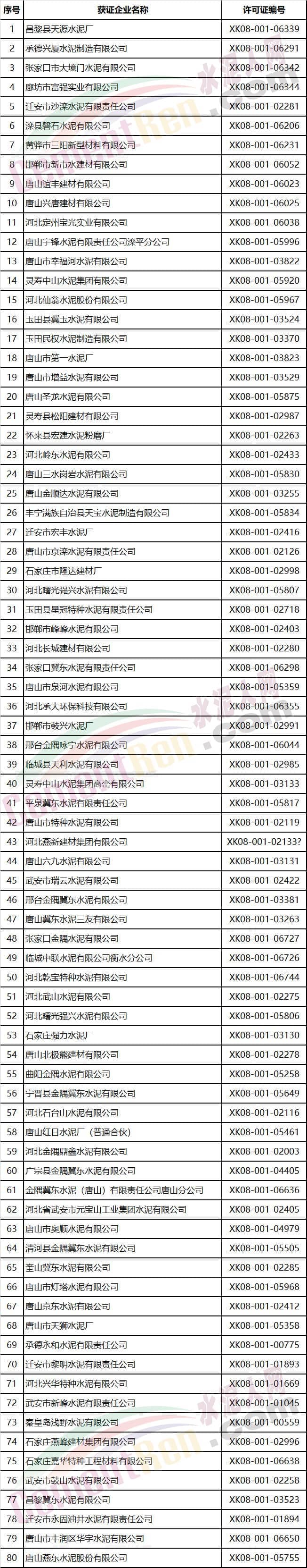 河北省部分水泥企業名單