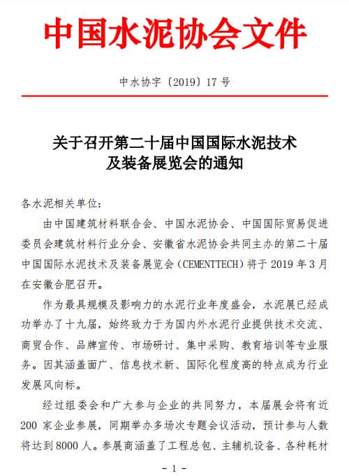 日前,中國水泥協(xié)會發(fā)布《關(guān)于召開第二十屆中國國際