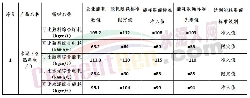 附件:新疆和靜天山水泥有限責任公司單位產品能耗限額數據表