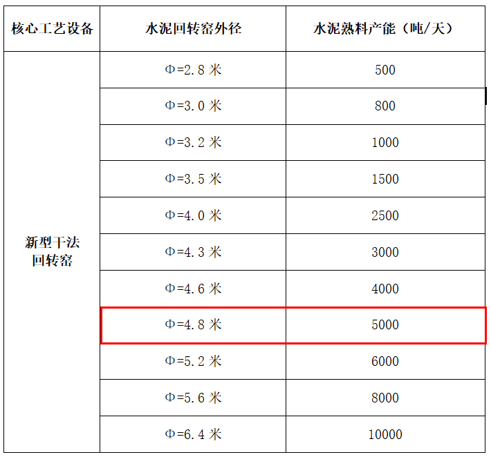 備注:1、對(duì)于變徑窯,按其最粗窯徑核定產(chǎn)能。2、窯徑在上表中兩檔之間的,按插值法推算其產(chǎn)能。