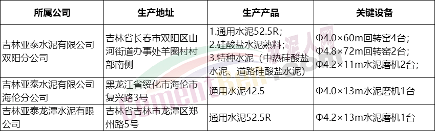 吉林亞泰水泥有限公司生產(chǎn)許可證信息