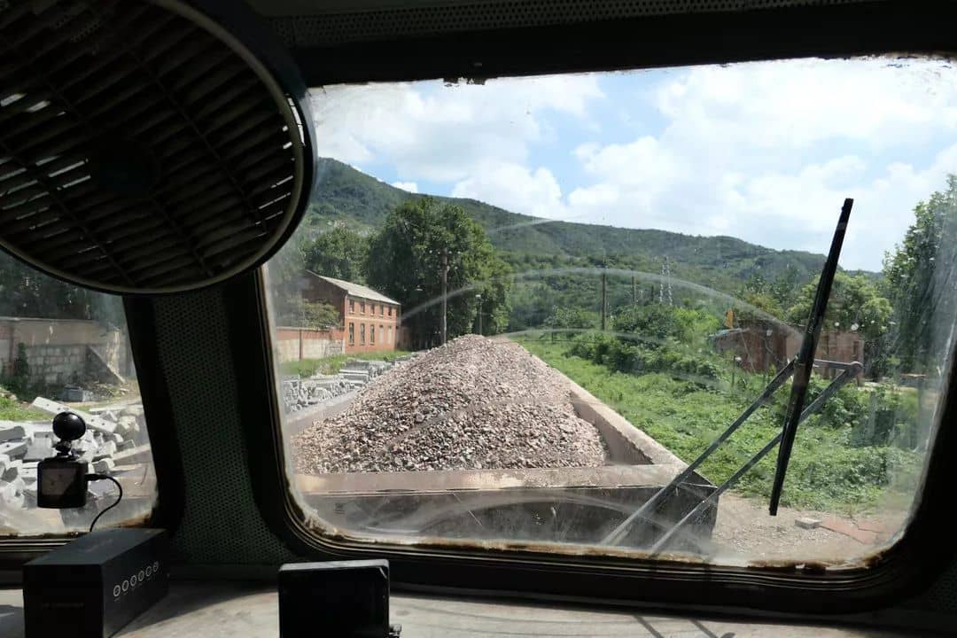 裝載貨物的車廂是俗稱“老K車”的自卸翻斗車,車廂上部的料斗在安裝于車底架兩側的氣缸的作用下可以向一側翻起,卸下石料。這些“老K車”9節為一組,掛在機車后面,將從湖山礦開采出的石料運往龍潭廠。