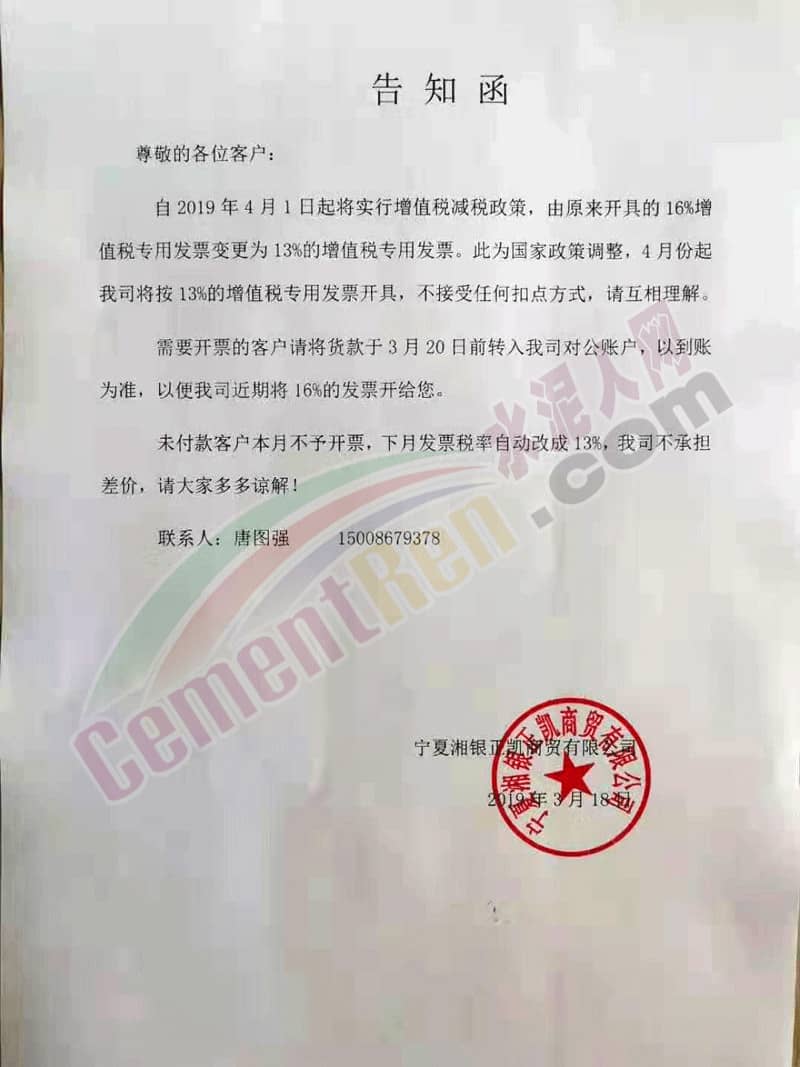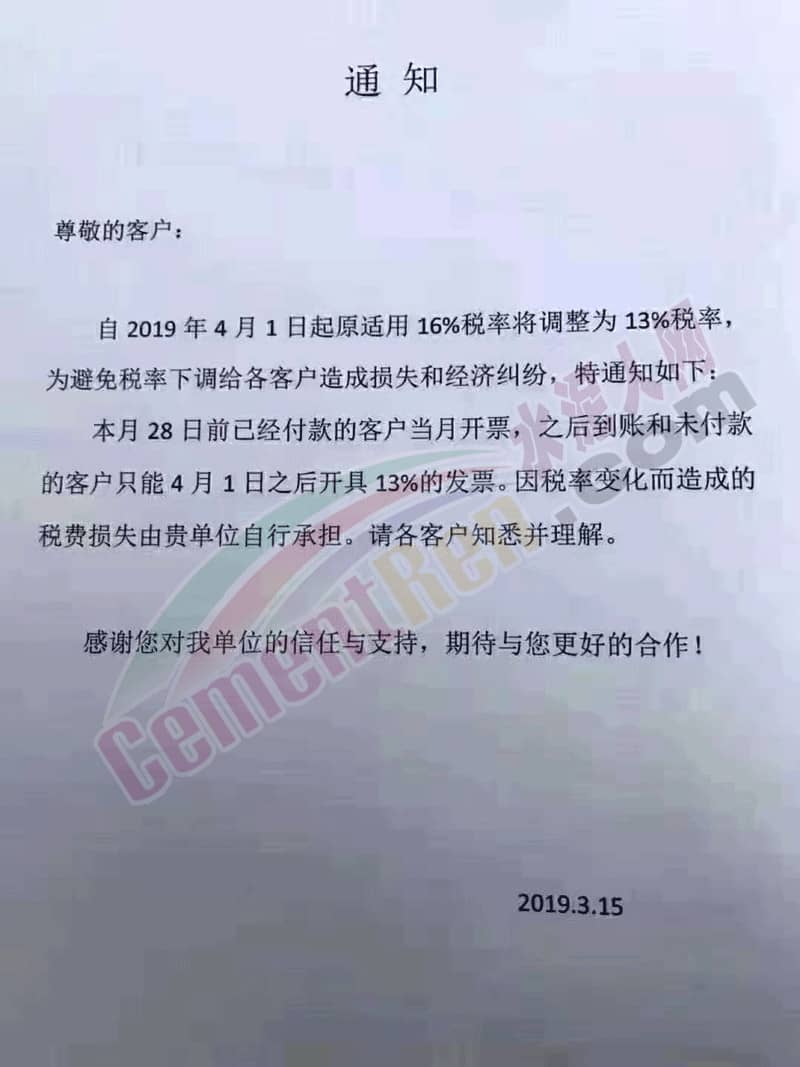 綜上所述,其實降低的只是稅率,與水泥價格是無關的!!!增值稅下降3個點,水泥不會因此降價,請相互轉告。
