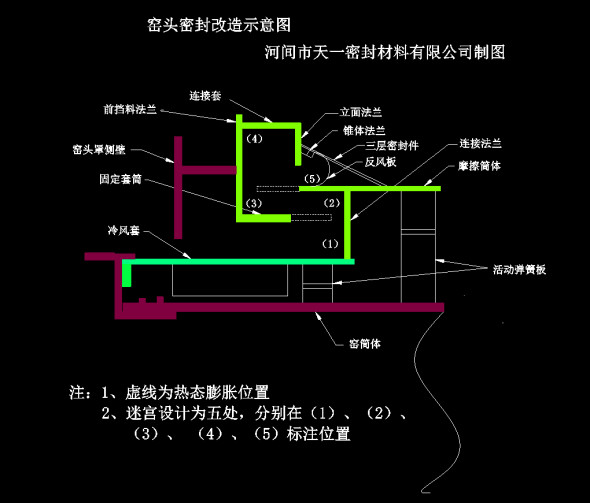 據(jù)介紹,這是河北滄州市天一密封有限公司(以下簡稱“天一密封”)研制的迷宮套筒式窯頭密封方案,內(nèi)設(shè)“七道迷宮”。窯頭密封很多施工企業(yè)都可以做,但是“七道迷宮”式密封還是頭一次聽說。