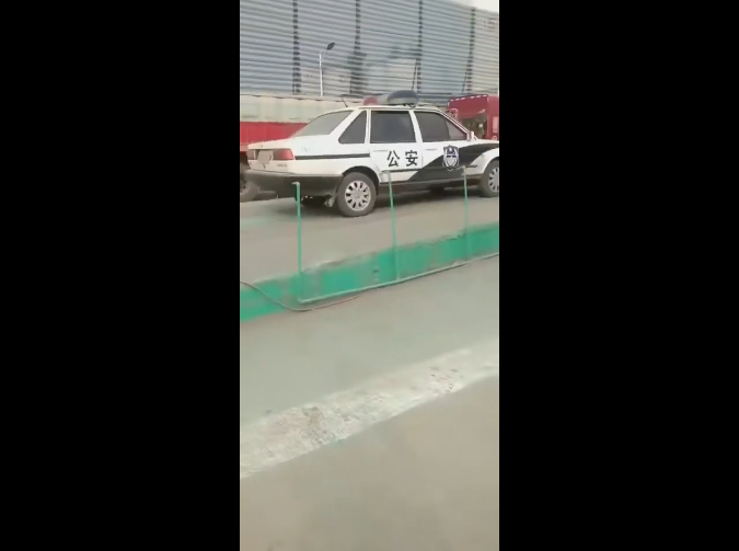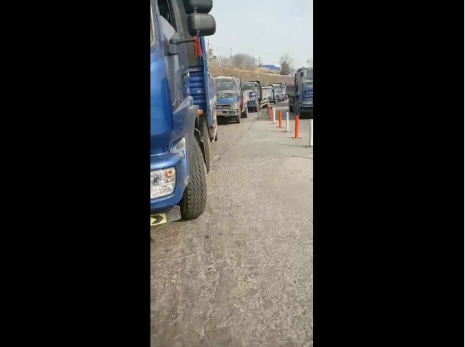 視頻截圖:唐山豐潤區一家水泥企業門前水泥車排起長隊