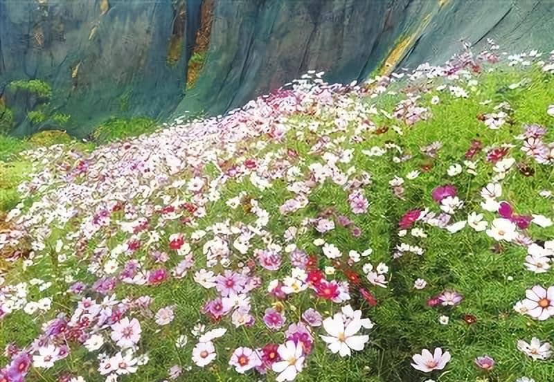 去年種的格桑花當年就爭相怒放。