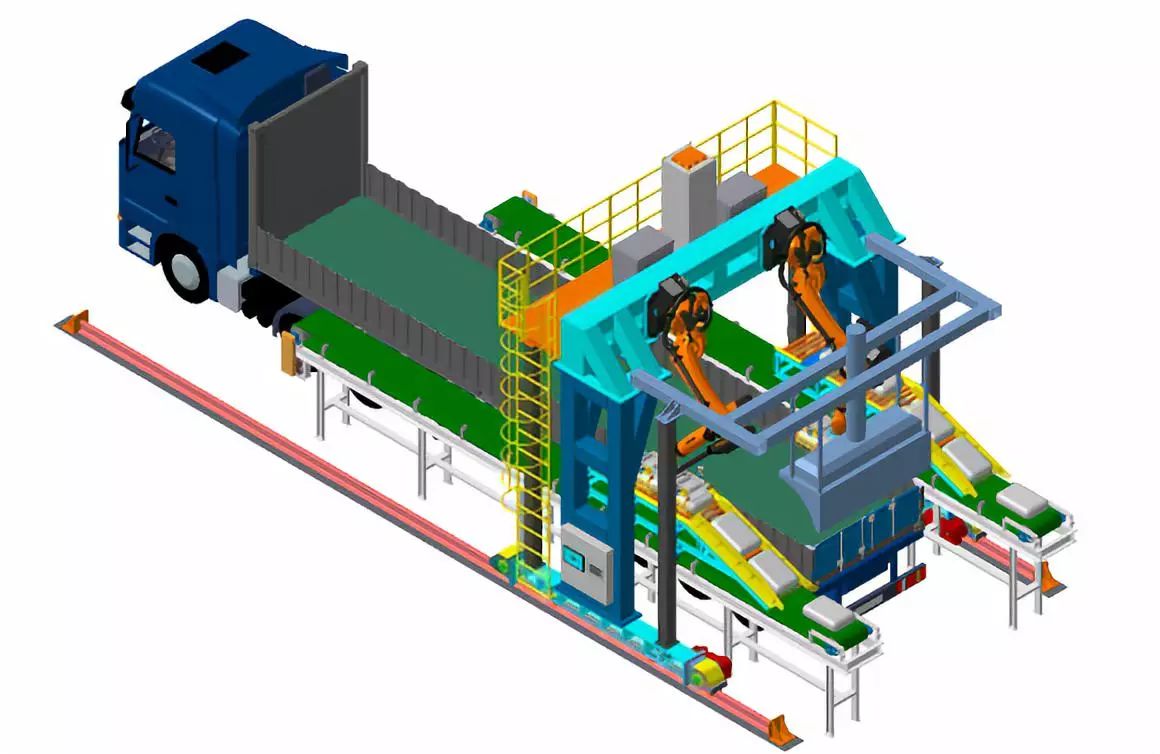 袋裝水泥智能裝車系統,是一種適用于水泥廠袋裝水泥裝車環節的全自動裝車系統,它可以縮短裝車碼垛時間、降低勞動強度、減少貨品損傷、降低裝車成本和提高工作效率,從而實現袋裝水泥裝車過程的自動化。該系統在水泥行業中擁有廣泛的應用前景,是現代化水泥企業降低勞動生產成本、提高生產效率和實現智能化生產的重要節點。