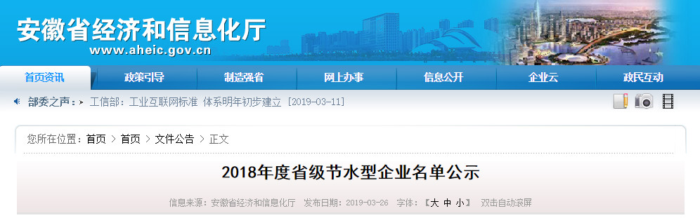 經省水利廳、省經濟和信息化廳組織專家評審,廬江縣凱迪綠色能源開發有限公司等70家企業被評為2018年度省級節水型企業。根據有關規定,現將評審通過的企業名單(見附件)予以公示,公示時間從2019年3月26日至4月3日,公示期間如對通過評審企業持有異議,請以書面形式向省經信廳節能處反映。