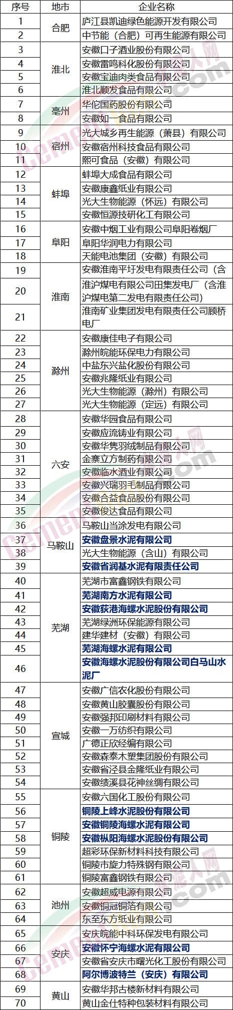 日前,水泥人網自安徽省經濟和信息化廳了解到共有70家企業被評為2018年度省級節水型企業。其中水泥行業安徽荻港海螺水泥股份有限公司、蕪湖海螺水泥有限公司、安徽海螺水泥股份有限公司白馬山水泥廠、安徽銅陵海螺水泥有限公司、安徽樅陽海螺水泥股份有限公司、安徽懷寧海螺水泥有限公司及安徽盤景水泥有限公司、安徽省潤基水泥有限責任公司、銅陵上峰水泥股份有限公司、阿爾博波特蘭(安慶)有限公司也榜上有名。 安徽省經濟和信息化廳名單公示原文如下: