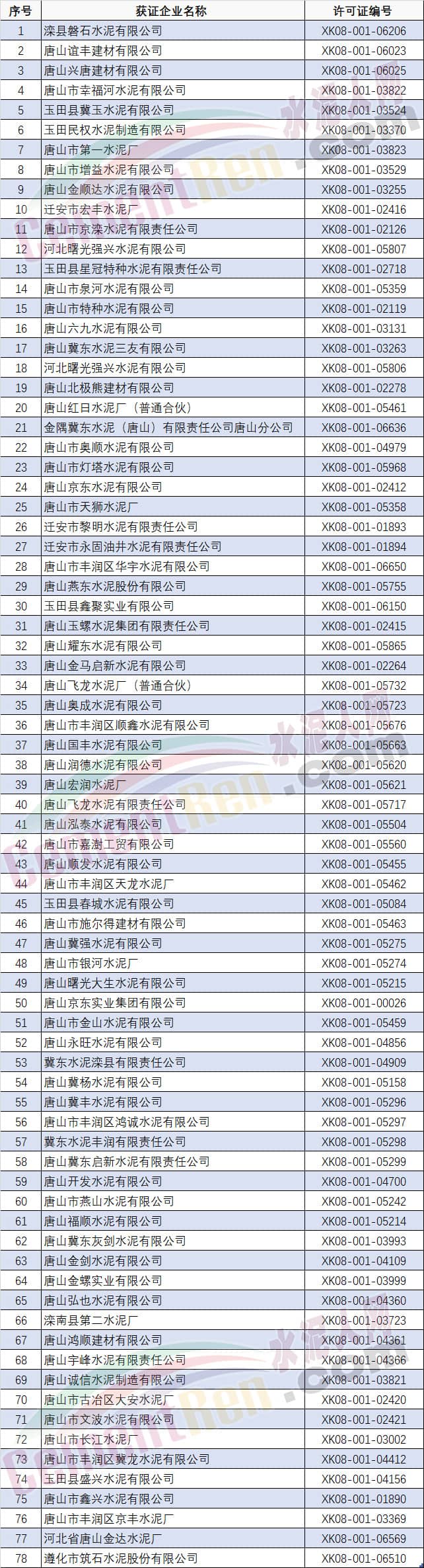 附:唐山市部分水泥企業(yè)名單: