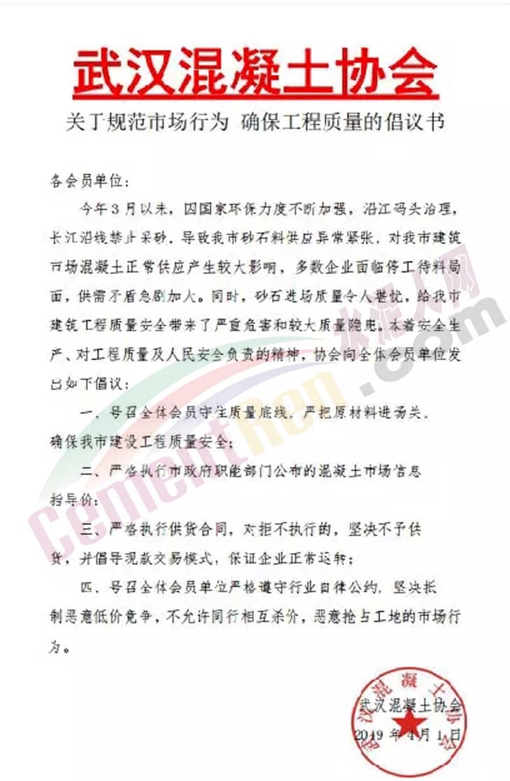 今年開年后,特別是3月以來湖北省武漢市進入工程建設高峰期,因國家環保力度不斷加強,沿江碼頭治理,長江沿線禁止采砂,導致湖北武漢市砂石料供應異常緊張,對武漢市建筑市場混凝土正常供應產生較大影響,多數企業面臨停工待料局面,供需矛盾急劇加大。