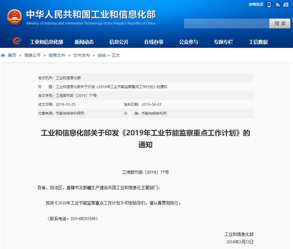 2019年工業(yè)節(jié)能監(jiān)察重點(diǎn)工作計(jì)劃
