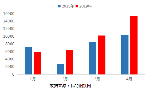 “我的鋼鐵網(wǎng)”采集的23家貿(mào)易商樣本日均成交量數(shù)據(jù)顯示,2019年1-4月武漢地區(qū)螺紋鋼日均出貨量約9520噸,同比上漲30.9%,環(huán)比月均增加38.9%。由此可見,今年以來螺紋鋼行情持續(xù)向好,1-4月螺紋鋼價格已累計上漲240元/噸,不過目前暫時沒有獲得關(guān)于螺紋鋼供應(yīng)緊張的消息。