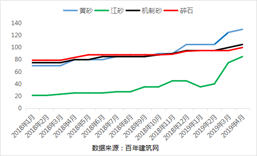 圖7:武漢地區(qū)砂石價格走勢圖(單位:元/噸)