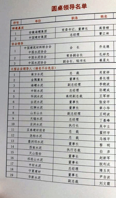 出席峰會的有19家大型水泥企業(yè)領導人為