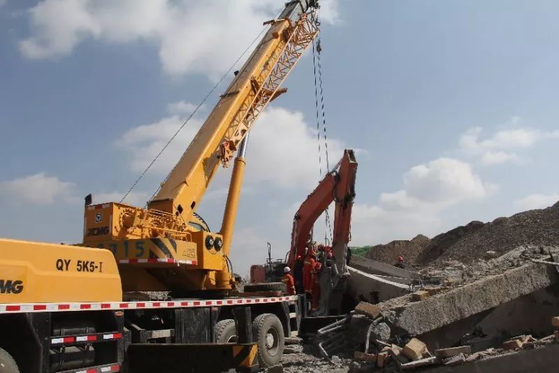 9時45分,消防救援人員到達事故現場,經現場詢問得知:一臺挖掘機在對房屋進行拆除時突然發生墻體倒塌,導致駕駛員被埋壓,指揮員根據現場情況,立即協調吊車對倒塌墻體進行起吊。