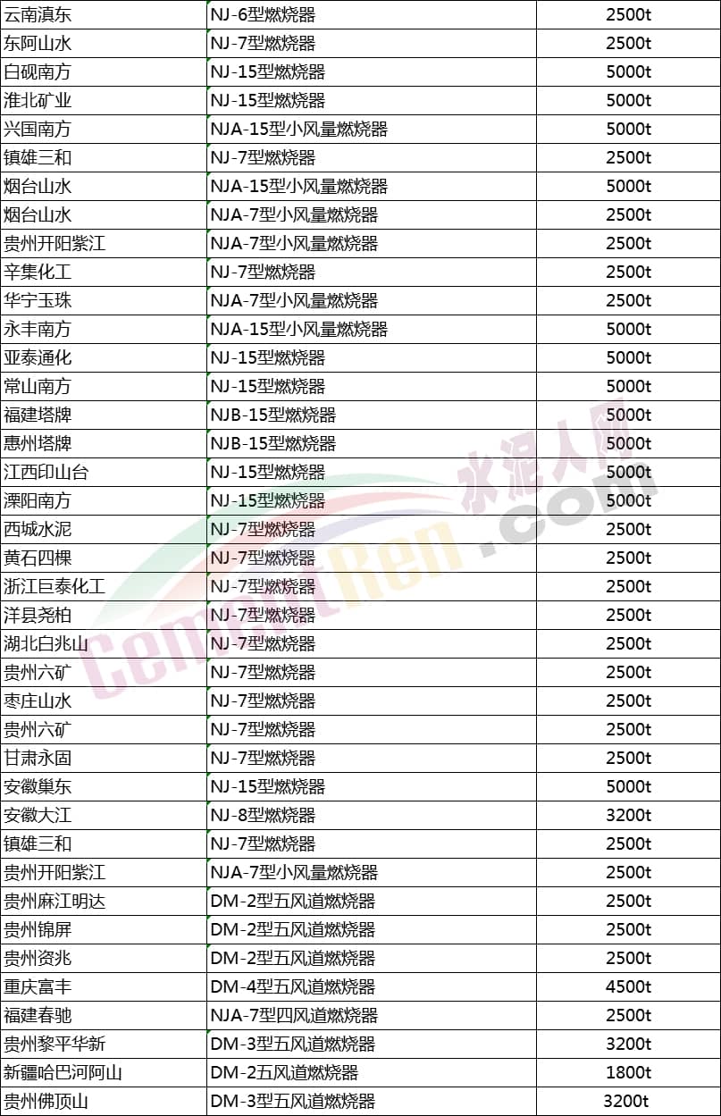 近年來,隨著國內環保政策的收緊,各大水泥企業也越來越注重環保。就拿新建的生產線來說,各大企業都在采用國內技術成熟的燃燒器。燃燒器作為水泥生產線的“心臟起搏器”,當然也需要滿足環保這個條件。那么各大企業都在用誰家的燃燒器呢?