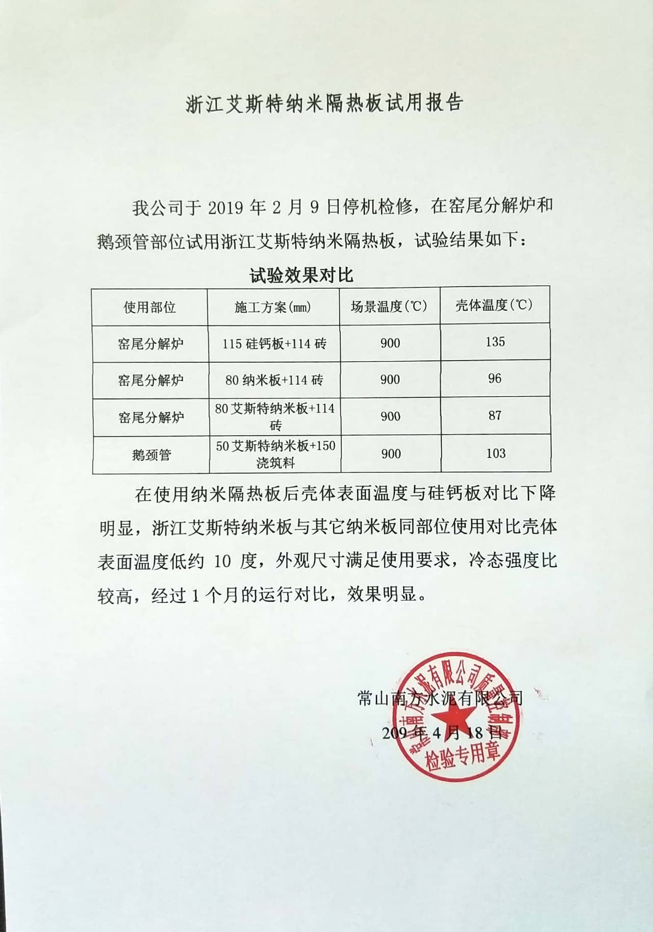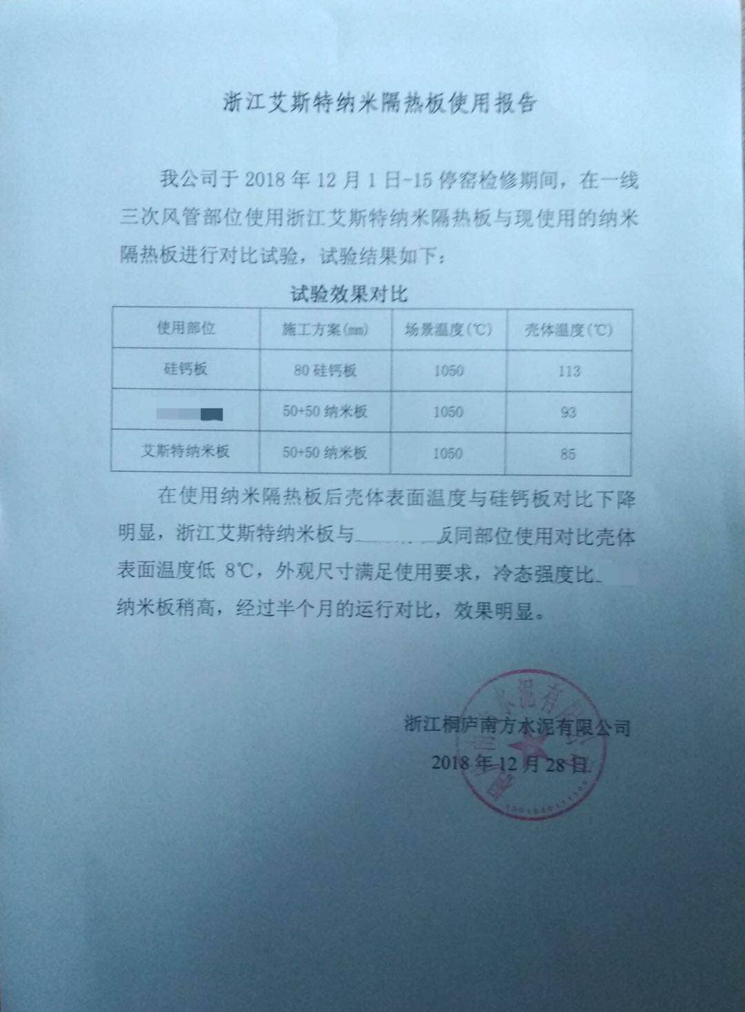2018年以來,艾斯特納米隔熱材料在南方水泥和華新水泥等大型水泥集團逐步推廣應用,已得到客戶越來越多的肯定。納米隔熱材料的使用,給客戶帶來了非常可觀的經濟效益。以浙江南方區域某水泥公司為例,使用效果和收益如下: