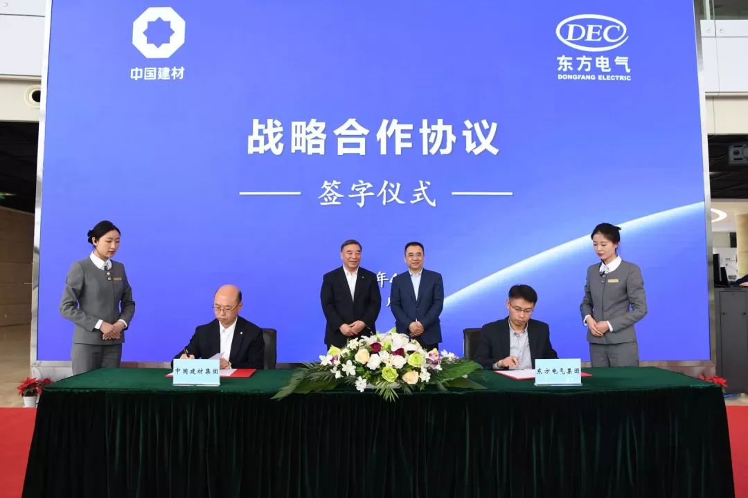 中國建材集團黨委常委、副總經(jīng)理常張利和東方電氣集團黨組成員、總會計師白勇分別代表雙方簽署戰(zhàn)略合作協(xié)議。東方電氣集團黨組成員、副總經(jīng)理徐鵬主持簽字儀式。