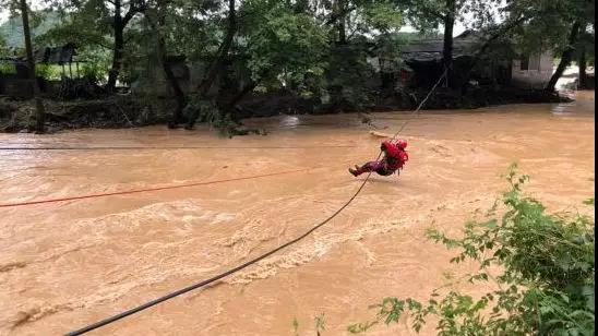 江西省全南縣大吉山鎮遭遇洪災,群眾被困,消防人員涉水救援。