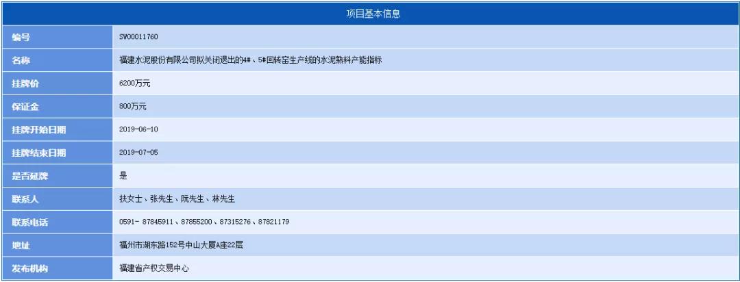 受企業委托,福建省產權交易中心掛牌出讓福建水泥股份有限公司擬關閉退出的4#、5#回轉窯生產線的水泥熟料產能指標,現公告如下: