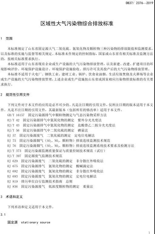 至此,山東省以《流域水污染物綜合排放標準》和《區域性大氣污染物綜合排放標準》為統領,具有山東特色的地方環境標準體系基本建立。從2003年以來山東省共發布102項各類環境標準,形成了以污染物排放標準為骨干、以環境管理類標準為支撐、以環境監測方法標準為輔助的標準體系,圍繞各類重點環境問題打造“標準簇”,有力支撐了環境質量改善和新舊動能轉換?!秴^域性大氣污染物綜合排放標準》原文如下: