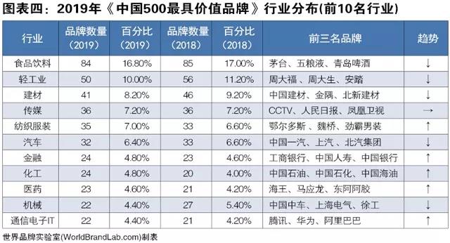 本年度《中國500最具價值品牌》排行榜中,共有來自食品飲料、輕工業、建材、傳媒、紡織服裝、醫藥、機械等在內的27個相關行業的品牌入選。其中,建材行業入選數量為41個,位居第三。