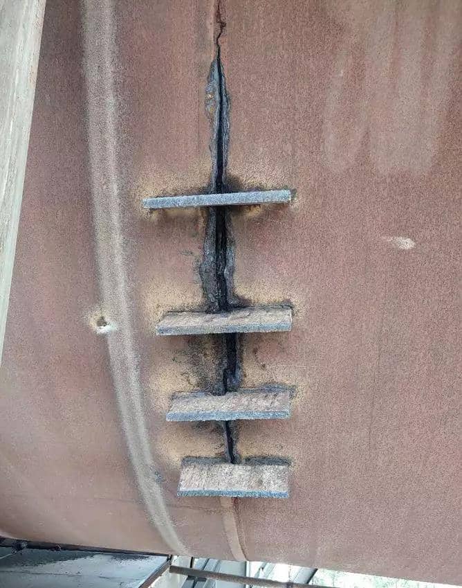 如上述緊急處理,僅從窯筒體外側(cè)焊補,因內(nèi)側(cè)缺陷無法清理,在窯體運轉(zhuǎn)正常的情況下也只能保證焊接處不再次開裂,所以類似的焊補的方法還是有一定的故障風(fēng)險存在的。