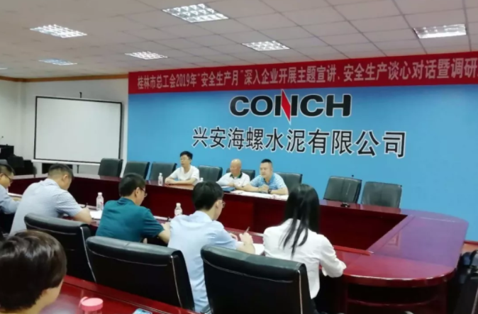 6月24日下午,桂林市總工會黨組成員劉寶成一行到海螺水泥有限公司開展2019年“安全生產月”主題宣講、安全生產談心對話暨調研活動。