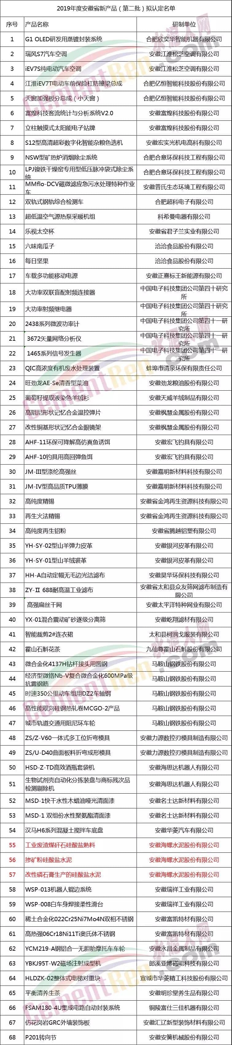 2019年度安徽省新產品(第二批)擬認定名單公示