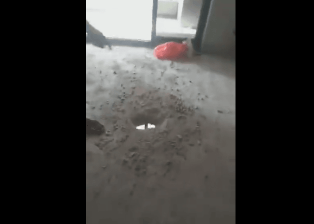 從視頻中可見(jiàn),該事件發(fā)生在梅州富力城第4期22棟803號(hào)房,業(yè)主僅用一把螺絲刀便可以輕松刮開(kāi)地板上的水泥,捅出一個(gè)窟窿,水泥毫無(wú)強(qiáng)度、韌性、穩(wěn)定性可言,鋼筋也是相當(dāng)細(xì),根本無(wú)法想象這可以保證樓上、樓下兩家人的日常生活安全。