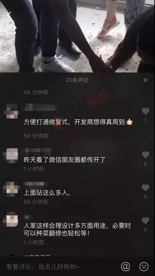 不少網(wǎng)友的評(píng)論也是亮了,調(diào)侃到“這也是開(kāi)發(fā)商想得周到,方便上下打通做復(fù)式。”。