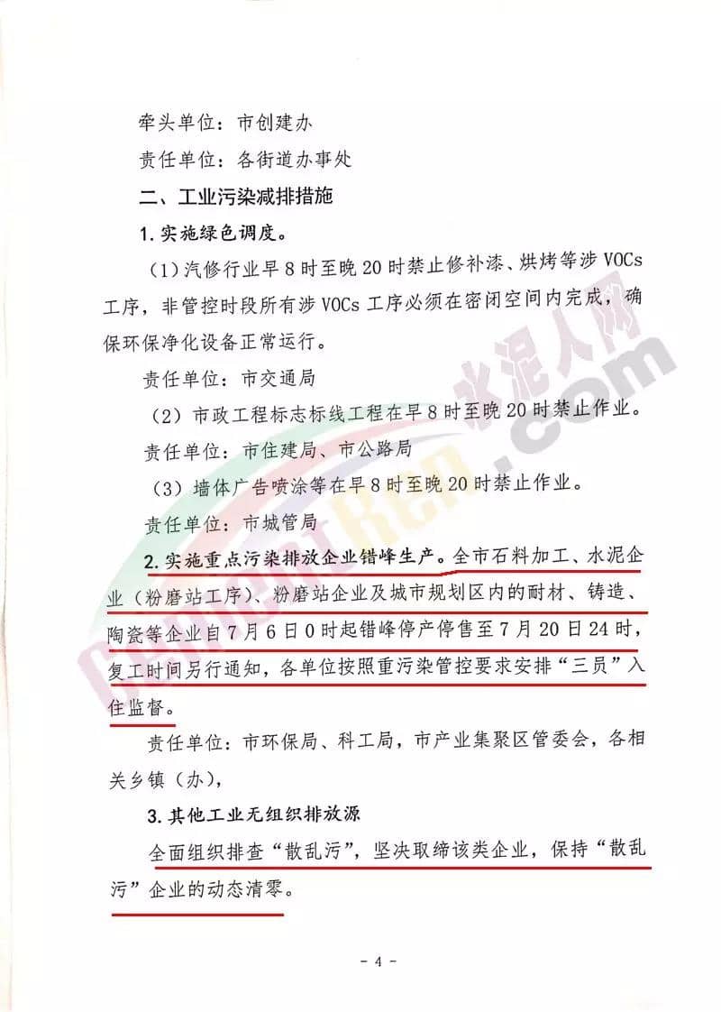 通知明確要求,禹州市全市石料加工、水泥企業(yè)(粉磨站工序)、粉磨站企業(yè)及城市規(guī)劃區(qū)內(nèi)的耐材、鑄造、陶瓷等企業(yè)自7月6日0時起錯峰停產(chǎn)停售至7月20日24時,復(fù)工時間另行通知,各單位按照重污染管控要求安排“三員”入住監(jiān)督。