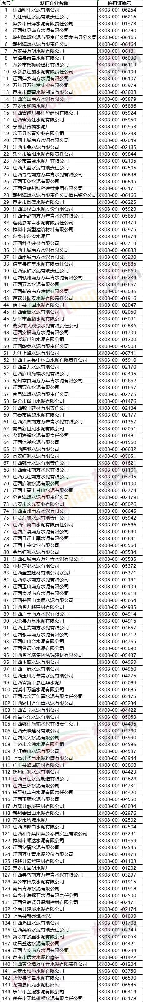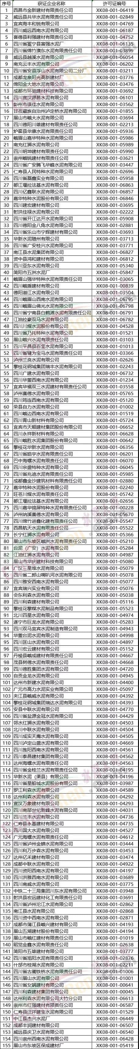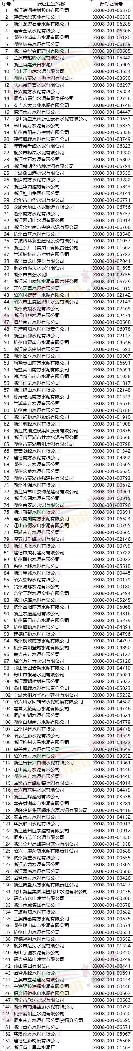附浙江、江西、湖南、廣西、重慶、四川、貴州7省區市部分水泥企業名單如下: