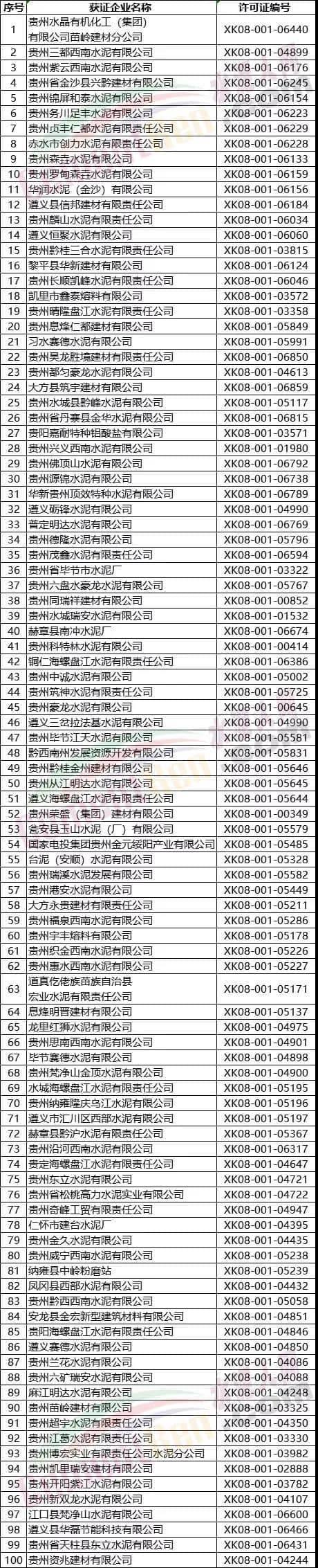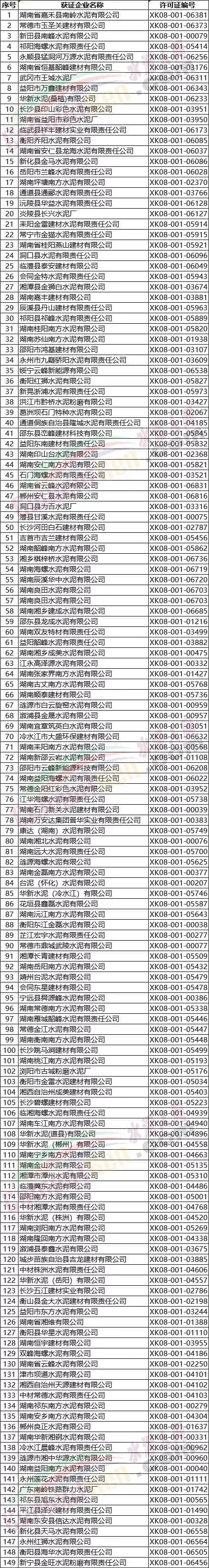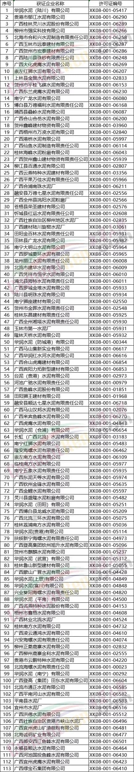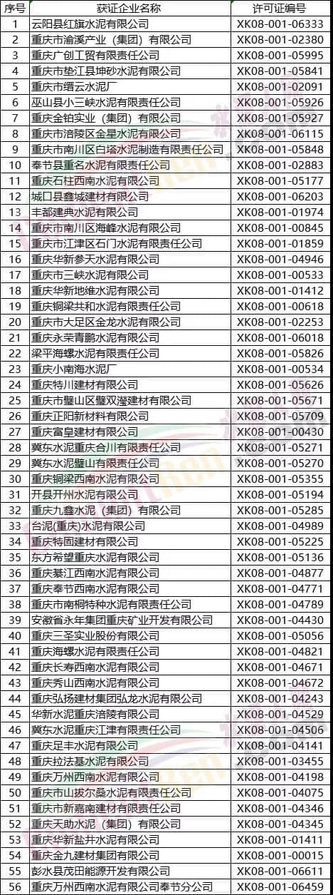 附浙江、江西、湖南、廣西、重慶、四川、貴州7省區市部分水泥企業名單如下: