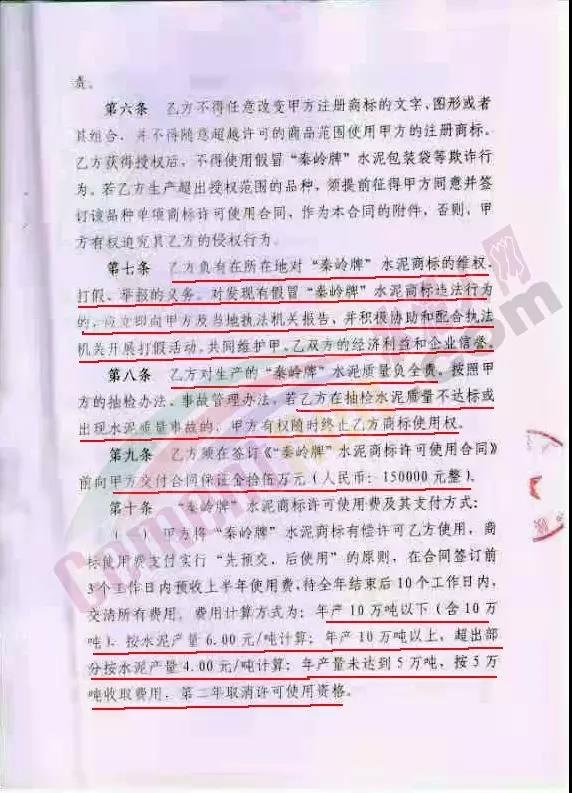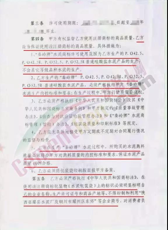 據水泥人網了解,其品牌授權生產經營協議中有明確質量及品牌使用要求。商標使用者應保證使用該注冊商標的商品質量,具體措施為:“秦嶺牌”水泥商標許可使用范圍為商標使用者生產的各標號普通硅酸鹽水泥產品;商標使用者生產的“秦嶺牌”各標號水泥,必須嚴格執行商標使用者“秦嶺牌”水泥生產內控標準和要求。在生產過程中,耀縣水泥廠行使質量否決權;商標使用者在生產“秦嶺牌”水泥的過程中,所購買的水泥熟料質量必須符合耀縣水泥廠對熟料質量的內控標準和要求,保證水泥產品質量100%合格。