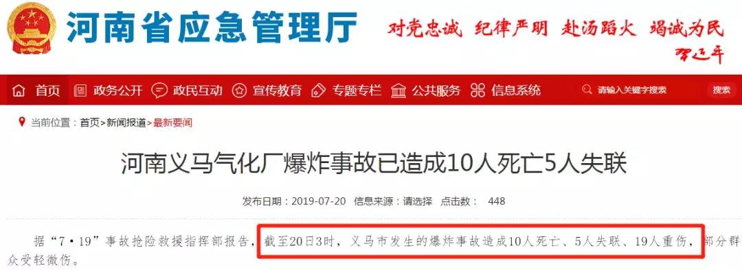 記者從三門峽市委宣傳部了解到,20日3時,義馬市發生的爆炸事故造成10人死亡、5人失聯、19人重傷,部分群眾受輕微傷。