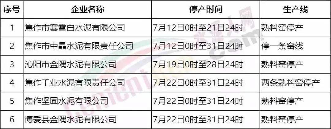 其中博愛縣金隅水泥有限公司、沁陽市金隅水泥有限公司等六家水泥企業(yè)在滿足排放濃度的前提下實(shí)施停限產(chǎn),詳情如下: