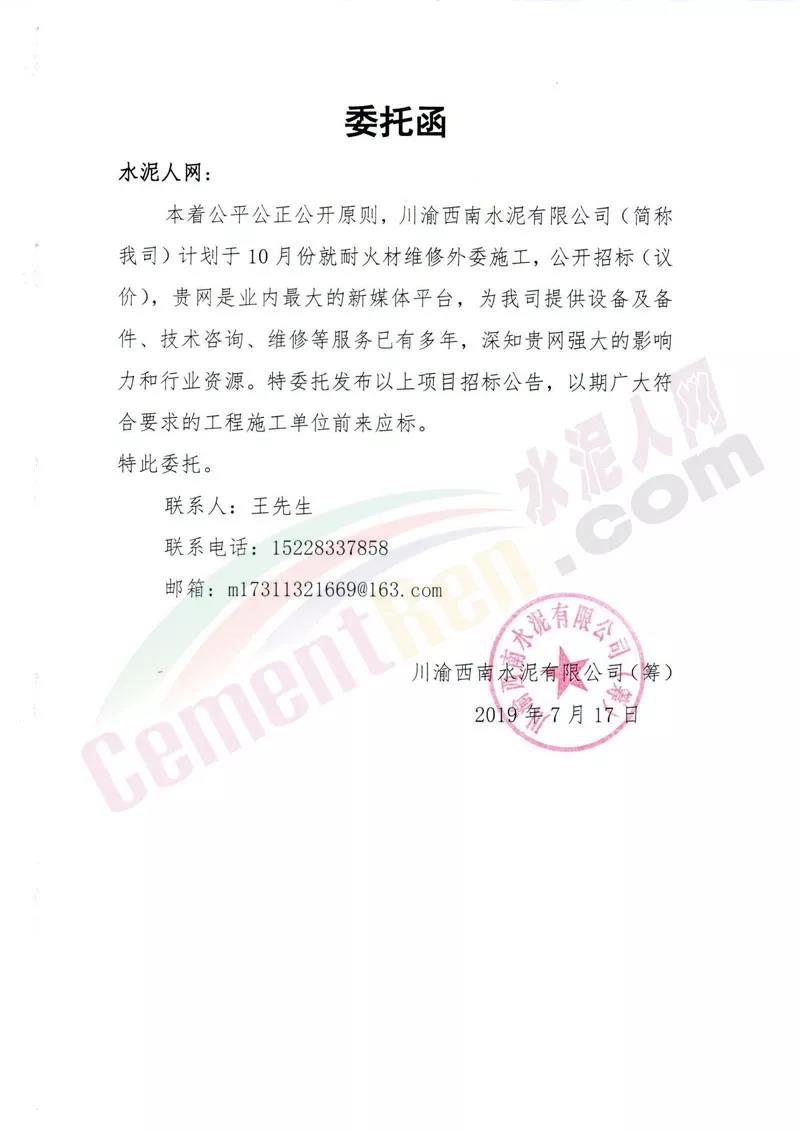 川渝西南水泥有限公司(籌)是西南水泥有限公司的旗下子公司,公司目前在運行的新型干法窯有 39 條。現(xiàn)面向社會統(tǒng)一對回轉(zhuǎn)窯系統(tǒng)耐火材料 2020 年度維修施工工程進(jìn)行招標(biāo)。