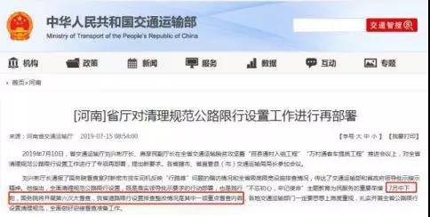 中國交通報消息,自2019年7月10日起,交通運輸部將在全國組織開展為期半年的公路限高限寬設施和檢查卡點專項清理行動!!