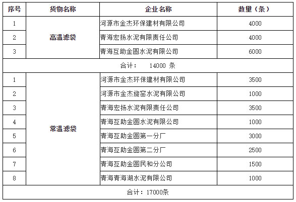 金圓環保是金圓控股集團下屬以建材環保為雙主業,集水泥、商砼、環保為一體的大型上市公司,金圓環保水泥板塊擁有青海互助金圓水泥有限公司、青海宏揚水泥有限責任公司、河源市金杰環保建材有限公司、杭州連威貿易有限公司等控股分子公司。現擬對水泥板塊各分子公司高溫、普通濾袋進行統一公開招投標,通過公開邀請具有生產供貨能力的單位進行投標。現將相關招標信息發布如下: