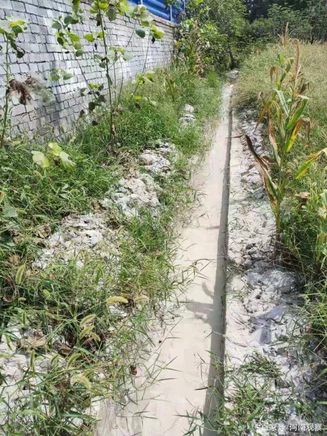 廠區后側直排溝因當地村民多次投訴停止排放,水泥漿將地面板結。