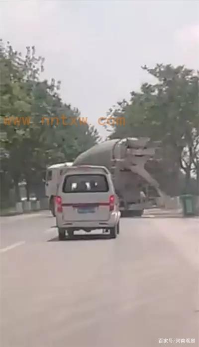 從廠區內出來的大型罐車一路拋灑水泥漿水。