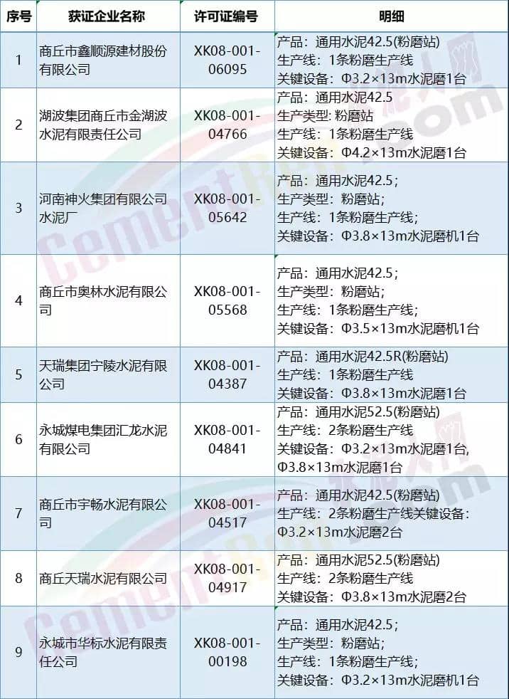 商丘部分水泥企業名單
