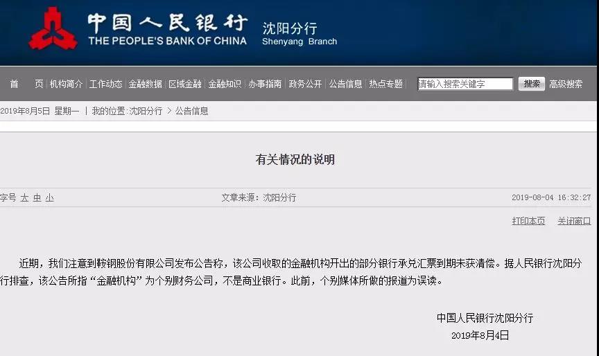 8月4日,央行沈陽(yáng)分行緊急辟謠,經(jīng)排查,該公告所指“金融機(jī)構(gòu)”為個(gè)別財(cái)務(wù)公司,不是商業(yè)銀行。