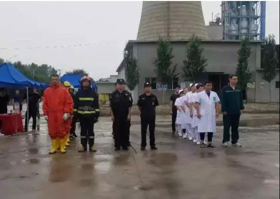 演練以淶水金隅冀東熟料制備車間氨水泄漏導致3人被困為背景,事故發生后立即啟動縣級應急預案,各相關部門趕赴事故現場,全力營救被困人員。